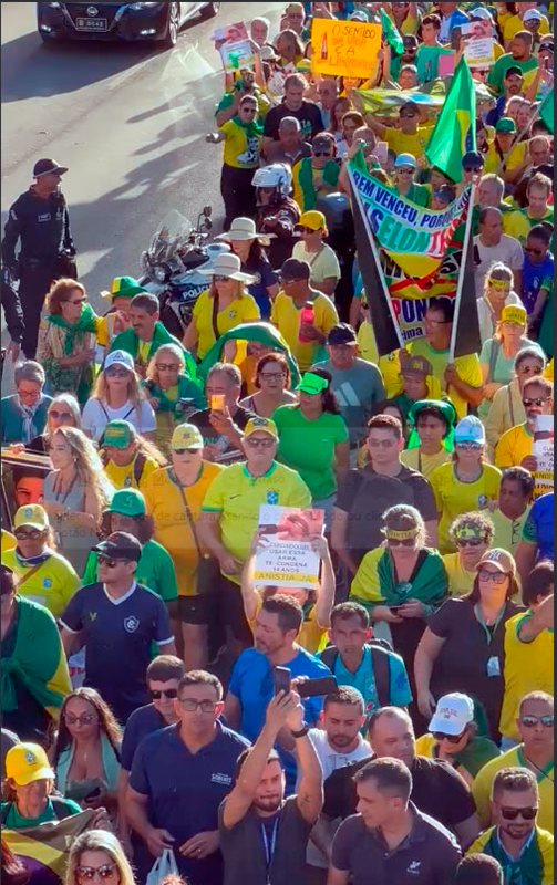Convocado pelo presidente Jair Bolsonaro e organizado pelo pastor Silas Malafaia e pelo líder do PL na Câmara, deputado Sóstenes Cavalcante (PL-RJ), o evento reuniu aproximadamente 10 mil pessoas, em uma manifestação pacífica, democrática e emocionante em favor da liberdade e da justiça.