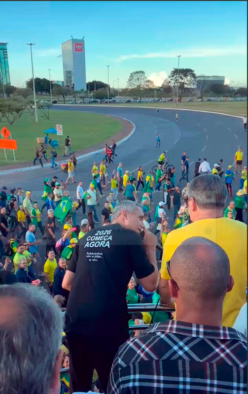“Parabéns, Bolsonaro. Se você tivesse sarado uma semana antes, eu não sei o que ia ser isso aqui. Só de você anunciar sua presença aqui — olha lá para trás para você ver —, já tem 10 mil pessoas aqui”, ressaltou. O presidente do PL também reforçou o caráter pacífico da manifestação: “Um trabalho pacífico, tranquilo. Ninguém pode reclamar disso. Temos que estar juntos para acabar com esse sofrimento dessa gente que está há dois anos presa.”