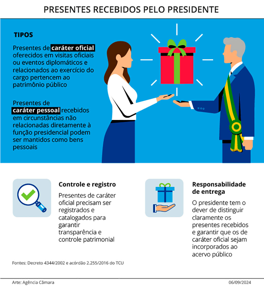 “É preciso reconhecer que, dado o elevado posto que ocupa, o presidente da República, enquanto chefe de Estado, pode ser agraciado, em sua pessoa física, com alguns presentes por outras autoridades, sem que disso resulte, por si só, qualquer ilicitude, desde que não haja conflito de interesses”, afirmou o deputado.