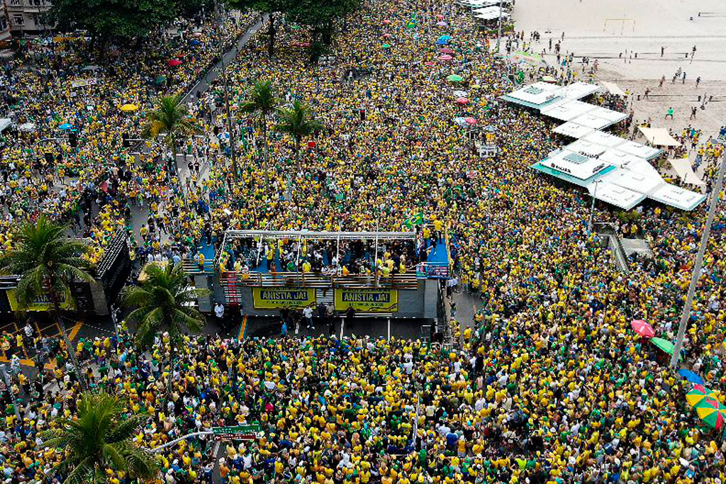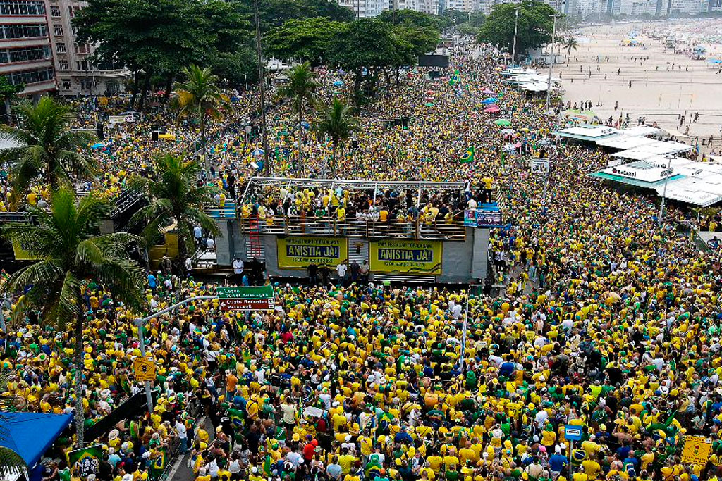 Rio de Janeiro – No último domingo, 16 de março, a Praia de Copacabana, no Rio de Janeiro, foi palco de uma grande manifestação convocada pelo presidente Bolsonaro e organizada pelo pastor Silas Malafaia. O evento reuniu uma multidão vestida de verde e amarelo em defesa da anistia para os presos dos eventos de 8 de janeiro e contra a atual política econômica do governo Lula.